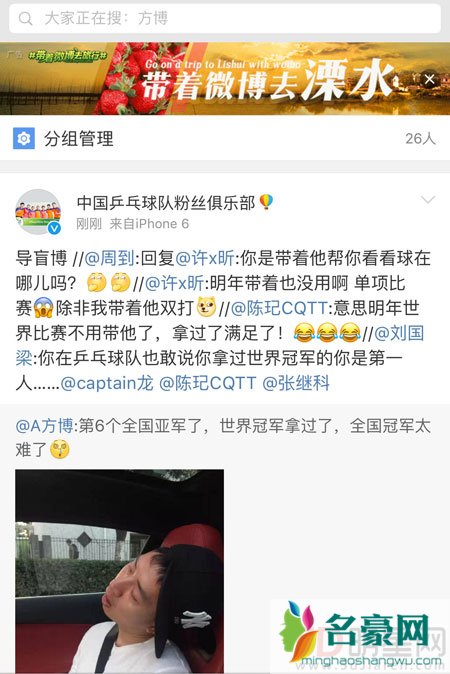 这几天,国乒队总教练刘国梁在微博上异常活跃,而其手下一众队员们则自从得知这个消息之后画风全都变成岁月静好我很乖巧。正当网友们觉得无聊的时候,第一个得罪了全国家队的队员方博在昨天晚上出现了,然而正如网友所料,枪打出头鸟,方博更博遭刘国梁吐槽之后,这个被称之为是团怼的方博接二连三的被其队友补刀。