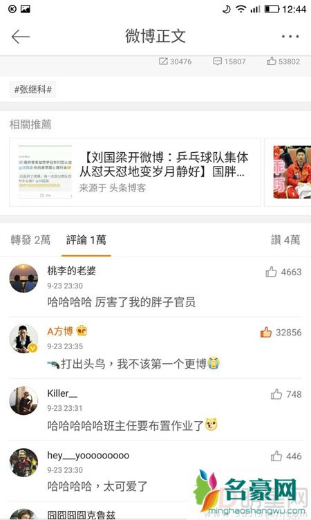 昨天下午,刚刚打完比赛的方博更新了一条最新状态,称自己已经拿了六个亚军,世界冠军都拿过了,全国冠军太难了。随后刘国梁总教练第一时间转发其微博并评论“你在乒乓球队也敢说你拿过世界冠军是第一人。”并随手艾特了已经拿过冠军的陈玘、张继科、马龙三人。这条微博一出网友们立刻沸腾了,要知道此前的方博就已经因为说刘国梁身高一米六而成为整个国家队的团怼对象,如今,刘国梁第一个带头回怼了他,并且找来了帮手,大家也就等着看热闹呢。