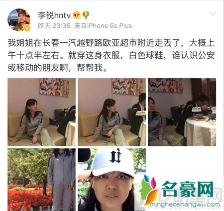 作为湖南卫视的知名主持人,李锐昨天深夜发微博求助称自己的姐姐在长春越野路欧亚超市附近走失,失踪时间大概是上午十点半左右,而他的发博时间已经到了接近十二点。李锐上传了姐姐走之前的穿着打扮以及正面照并表示希望如果有认识公安系统或者是移动的人希望可以一起帮忙寻找。随后,不少网友纷纷转发帮助李锐让更多的人看到,据知情人爆料称这个女子就是李锐的亲姐姐,走失原因不明,但这一紧急事件也同样牵动着无数网友的心,希望可以尽早的帮助姐姐回家。