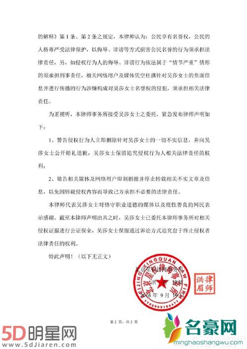 吴莎律师函