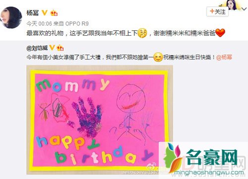 不过好朋友和外界网友们的祝福再多,也都比不上刘恺威的表态重要,身为杨幂的老公,刘恺威在今天零点可是掐着时间发布了微博,他在微博上晒出女儿小糯米的画作,并配文称:“今年有個小美女准备了手工大礼,我们都不跟她抢第一,祝糯米妈咪生日快乐!”