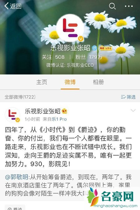 下午,得到消息的乐视方面迅速做出回应,对郭敬明表示抱歉,认可了他所有的努力和付出,也将会期待着9月30号一起到电影院观看。虽然这件事情看起来没有任何不妥,就是一场名誉权的维护战,但是因为郭敬明以往的黑点,导致还是有一部分网友表示不买账,并不认为此次事件的发生是偶然的,而是郭敬明及其团队刻意为之,目的就是为了炒作此次电影,再为其添最后一把火。