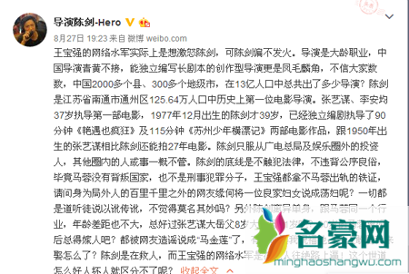 从王宝强宣布离婚之后,虽然正值奥运会期间但是仍然让大家的目光全部聚焦在他们身上,毕竟这是一出老实人被待了绿帽子同时还被自己最信任的两个人欺骗、背叛的悲惨故事。而全民都在讨伐马蓉和宋喆的时候,一位自称是导演的男人陈剑在微博上不断发声控诉王宝强这样的做法不对,且一直力挺马蓉,甚至扬言称自己娶马蓉也是可以的。接连多天,不断在其微博下边可以看到各种针对王宝强的文章和微博内容,而关于马蓉一方,陈剑虽然说的不多,但是每一条都是在支持马蓉,其三观也真是醉了。