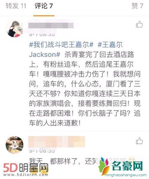 得知王嘉尔因为追车而受伤的消息,粉丝们尤为的愤怒,他们不仅在微博上声明要求造成此次事故的追车粉丝进行道歉,同时也希望大家能理智对待追星,因为黄牛追车的这种做法十分危险,早前就曾发生或鹿晗怒斥黄牛一事,没想到同样的事情现在又发生在王嘉尔身上。