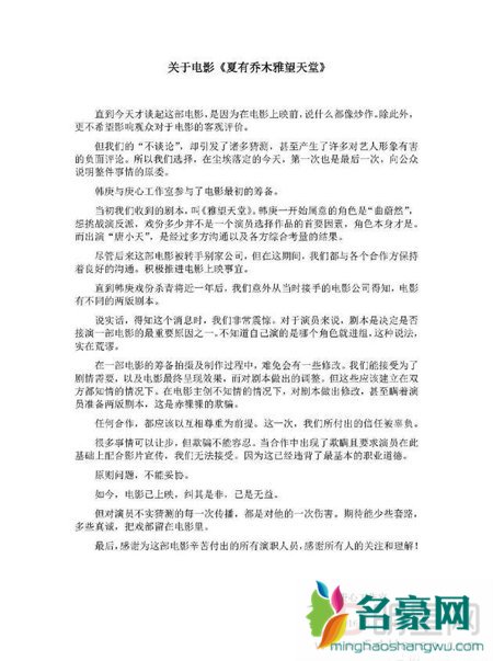 韩庚工作室声明