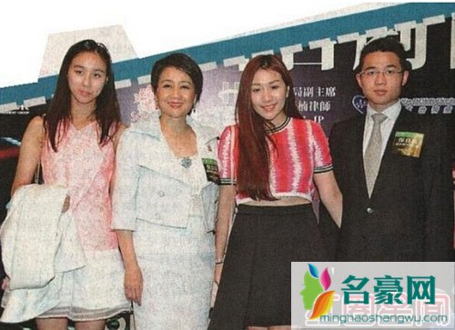 左起何超欣,赌王四太梁安琪,超盈及猷亨一家