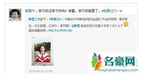 最近快到六一儿童节了。而每到六一儿童节来临之际,娱乐圈总不缺乏一批明星晒自己小时候的照片。这不,韩雪工作室趁六一节来临之际,发布了韩雪95年参加全国少先队代表大会的珍贵的视频与照片。照片中韩雪只有12岁,是作为苏州历史上唯一一位红领巾代表,赴京参加了第三届全国少先队代表大会,而韩雪转发此微博不失调皮的在微博中调侃道“学霸,学不好就罢了,我要过六一。”而网友也回应评论道“看小时候这么清纯的模样,绝对没整容。”从照片中就可以看出韩雪从小就是个个美人胚子。