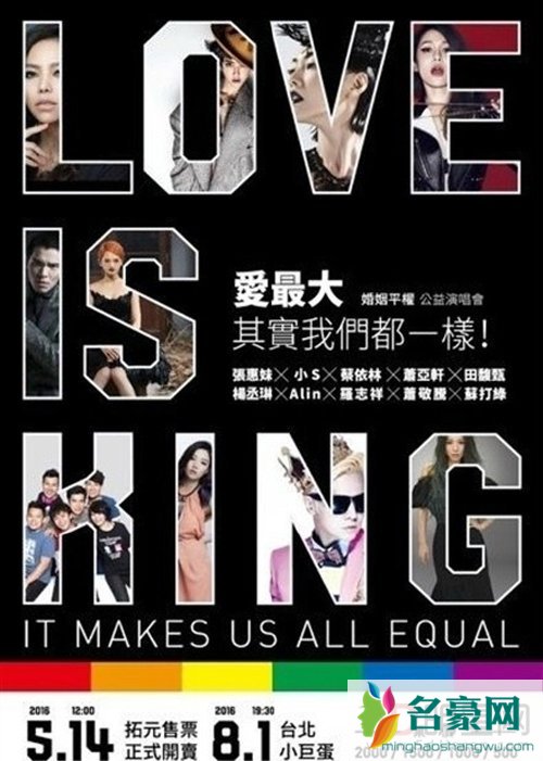 近日台北举行了一场特殊的演唱会,此次名叫《爱最大》的演唱会中邀请到了诸多歌手倾情献唱,群星合体为同志发声,演唱会中不仅有张惠妹、蔡依林、田馥甄等等一线歌手,并且还有早已经公开出柜了的蔡康永,他也在现场谈到了同志婚姻平等权的问题,这么一场特别的演唱会,下面我们就详细来看一下。