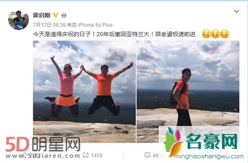 7月17日,时隔两年都没有更新过微博动态的霍启刚,他突然在微博中晒出自己与老婆在亚特兰大的照片,并且还配文道:“今天是值得庆祝的日子!20年后重回亚特兰大!跟老婆极速前进……”,照片中郭晶晶与霍启刚十指紧扣、二人双臂张开一蹦三尺高,彼此之前流动的甜蜜气息虐到了不少单身狗。