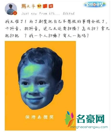在9月1日的时候,马天宇在微博上发文,声称“我太难了!为了剧宣把自己不想做的事情全做了。”“过今天还需要扫楼,有人一起吗?”暗示杨紫不为新剧做宣传。