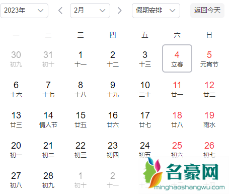 2023年立春是在农历正月十四,公历2月4日,星期六;具体进入立春的时间是10:42:21。立春是一年的第一个节气,“立”是开始的意思,所以立春节气表示春季的开始。不过这个时候气温还是偏低的,在气象学上还没有达到入春的标准,而且这个时候还要小心倒春寒。立春节气有三候:“一候东风解冻,二候蜇虫始振,三候鱼陟负冰”。