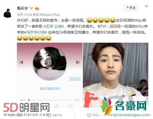 今天我们的天后王菲再度发布新歌曲,只是和其他歌手们大张旗鼓的宣传不同,天后任性的丝毫没有宣传,低调的发歌低调的生活,这件事情连提都没有提到过,不过没想到一直都喜欢王菲的马天宇在第一时间看到后就发布微博为其宣传,网友们一边感叹于王菲的低调,另一边也为马天宇的死忠而感慨万千啊。