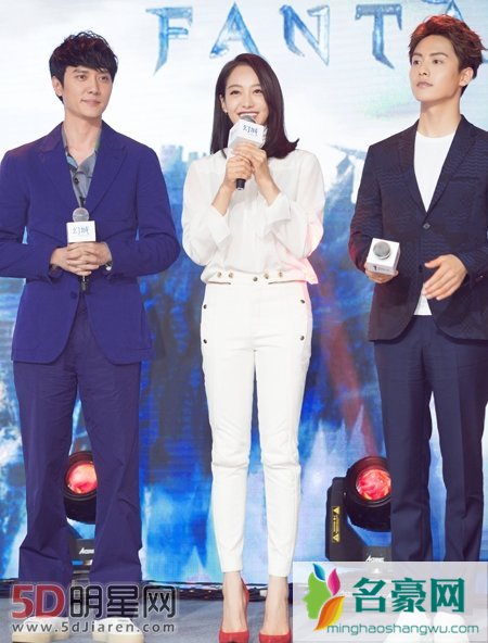在发布会上,虽然几乎所有主创都登上了这次舞台,但是一袭白衣的宋茜却还是以闪亮的姿态成为全场的焦点,原本就长得漂亮的宋茜这次身穿一身白色衬衣和白裤子加上一双红色高跟鞋点亮自己整体的色彩搭配,虽然嗓子发炎不怎么说话,但是宋茜的外形已经为发布会增光添彩不少,而现场的制作团队还专程准备了蓝白相见的装饰花,摆成一个大大的茜字,宋茜本人站在这样的背景之下更加显得这个场景仙气十足,有一种美妙的幻城的感觉。