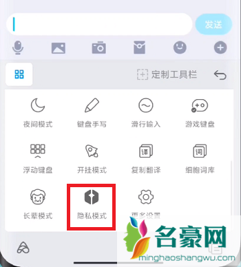 2、然后上划功能,可以在所有功能中最下方点击【隐私模式】;