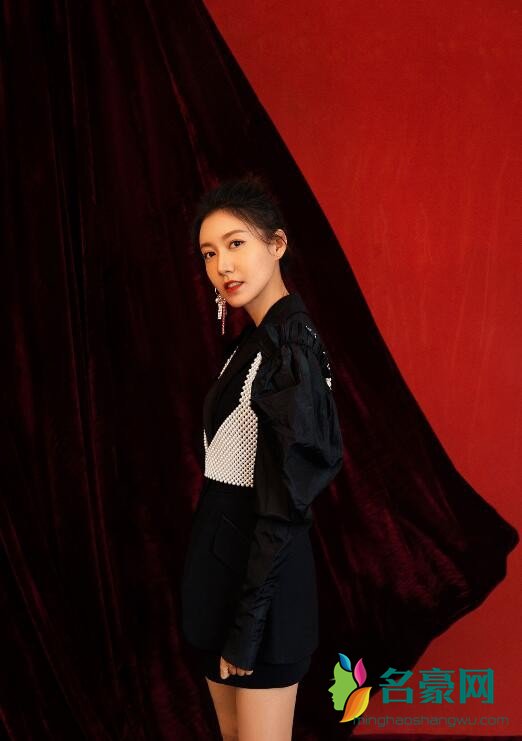 照片中,高露身穿一件黑色泡袖西装,剪裁规整的衣领与不规则设计的衣袖相结合,搭配珍珠拼成的马甲,整体风格帅气而不失随性。除此之外,高露精致的妆容,高高束起的头发配以单边耳环更是彰显超A气场。