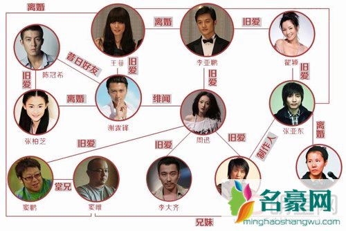 天后王菲的感情生活向来都是波折不断的,想要理清楚这中间的关系,一张王菲和李亚鹏的关系图无疑会给大家很大的帮助,在上图中我们可以看到王菲不仅和李亚鹏有过一段婚姻,她曾经和窦唯也结过婚,此外王菲的旧爱还有谢霆锋,至于李亚鹏方面他的旧爱有瞿颖、周迅等女星。