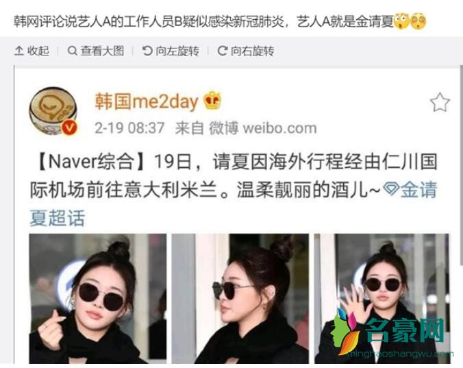 近日,网上曝出了一则关于韩国艺人金请夏疑是被隔离的消息,据悉,因为金请夏的的工作人员疑似已经感染了新冠肺炎,所以在她身边的金请夏,也受到了众多人怀疑的对象,因为她的感染可能性是非常大的。