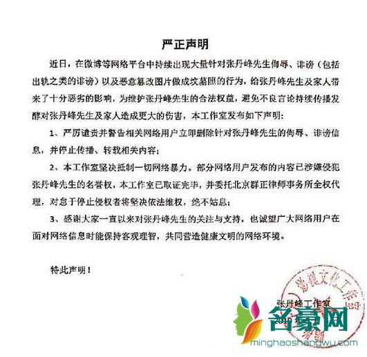 张丹峰工作室声明