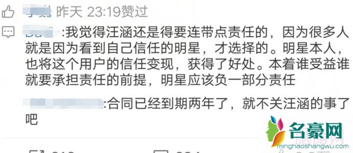 此事一出,引起轩然大波,众多网友表示自己也曾跳进过爱钱进这个坑,有的出来了有的到现在都还没解决,扬言说汪涵应该为此事负责,应该还钱。而也有不少网友表示,汪涵在2018年就结束了与爱钱进APP的合约,2019年是刘国梁做的代言人,而今年则是雷佳音,为啥这事儿非要扣到汪涵的头上,公司的问题关代言人什么事,人家也说了自己体验过并且也在积极跟进这个事情。两方争吵激烈,各有各的理,似乎都有道理,毕竟站的角度不同。