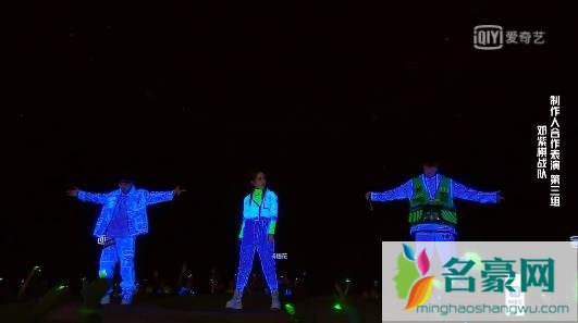 队长邓紫棋自然也是担任了副歌部分,刚刚开嗓就引来了尖叫声。而台上三人穿着的反光衣则成了舞台上最大的亮点,配合着舞台的灯光十分有意境。