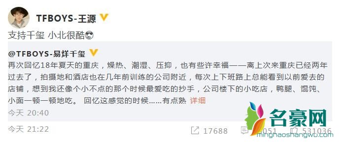 王俊凯的动态发布出来以后,王俊凯和王源纷纷转发了并支持他的电影,王源转发此文,并写道:“支持千玺,小北很酷!”而王俊凯也转发并为好兄弟加油,称:“支持千玺《少年的你》!”