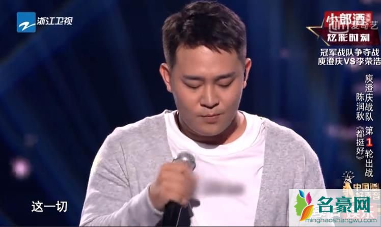 在比赛的第一回合当中,李荣浩派出战队成员田颖对战庾澄庆战队温暖男声陈润秋。