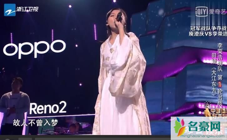 李荣浩延续之前的风格依然不改编,派出了田颖演唱阿兰的《大江东去》。田颖一身古装登场,仙气飘飘,画面感很强,而且李荣浩还给学员田颖配上了强大的管弦乐队,一首古风歌曲《大江东去》演唱的很有气势。