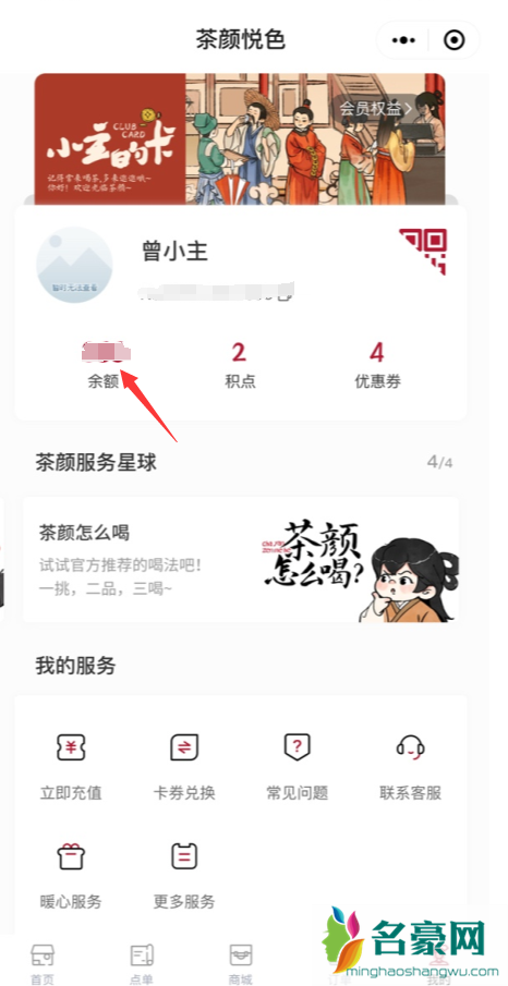 1、进入茶颜悦色官方小程序,在首页就可以看到充值活动,但是这个时候我们需要点击右下角“我的”,如图: