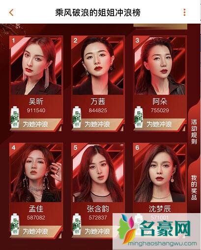 《乘风破浪的姐姐》复活谁暂时还未官宣,但是在《乘风破浪的姐姐》冲浪榜中前几名分别是:吴昕、万茜(未淘汰)、阿朵、孟佳、张含韵、沈梦辰。