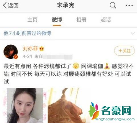 刘亦菲被网友们称为神仙姐姐,她一出道的时候人气就非常高,大家都很喜欢刘亦菲出演的影视剧中的各种角色,不管是王语嫣,还是小龙女,又或者是赵灵儿,刘亦菲都能非常出色的将其特点展现的淋漓尽致,给观众们留下十分深刻的印象。近几年刘亦菲很少出现在公众场合,她也很少有新作品,让粉丝们很挂念她,不过近日有细心的网友发现,刘亦菲的前男友宋承宪竟然点赞了刘亦菲前段时间发的微博,这让很多人不禁开始猜测起来,这其中到底蕴含了什么意思呢?
