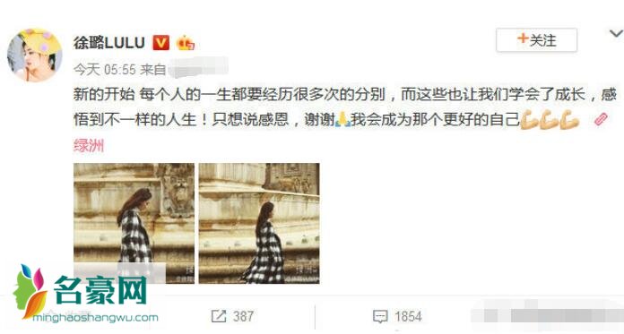 徐璐更新完微博,表示这是新的开始,每个人的一生都要经历很多次的分别,而这些也让我们学会了成长,感受到了不一样的人生,最后徐璐还表示说自己会成为那个更好的自己,引起了网友们的猜测,不少人好奇,徐璐这么说是因为她和张铭恩吵架了吗?还是两个人真的要分手了呢?