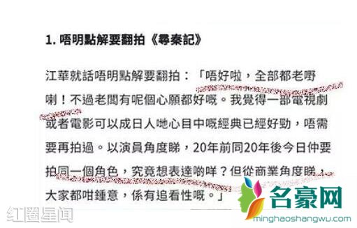 但此次在众多主演中,我们发现少了一位演员:江华。在《寻秦记》中他饰演嫪毐以及连晋,但此次新闻发布会上他并没有出现,其实早在去年该剧宣布拍摄电影版本的时候,江华被采访时就说过,其实20年前的剧已经很经典了,无需翻拍,并且自己也不明白为什么要去翻拍,20年前拍摄和20年后拍摄对于他们想表达的意义是什么呢?自己不是很明白,因此自己拒绝加盟。