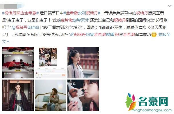 金希澈最近在追2019年新版的《倚天屠龙记》,就是曾舜晞、陈钰琪、祝绪丹主演的这一版,在剧中祝绪丹饰演的周芷若,前期柔弱善良,在被张无忌辜负后黑化一步一步走向强大,这是一个人物性格十分鲜明的角色,金希澈很喜欢周芷若,自然也关注起来了饰演周芷若的祝绪丹。