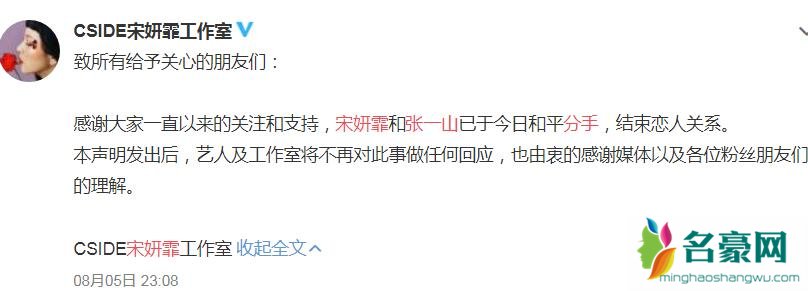近日,宋妍霏工作室在微博上发出声明,表示宋妍霏和张一山已经和平分手,结束恋人关系,这一下惊呆了网友们,大家都非常好奇张一山和宋妍霏什么时候在一起的。张一山童星出道,现在转型在演艺事业上拥有很多非常不错的成绩,而宋妍霏在韩国有过一段做练习生的经验,之后回国,现在在演戏和综艺方面都有了十分不错的发展,不过他们两个人之前并没有交集,看上去也不是很像会在一起的样子,所以消息曝出后,不少吃瓜群众都表示,自己难道连了周震南的2g网吗?