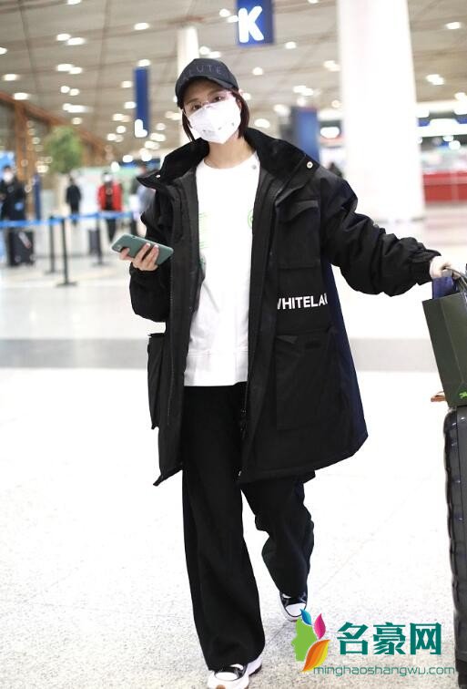 李纯穿羽绒服亮相机场