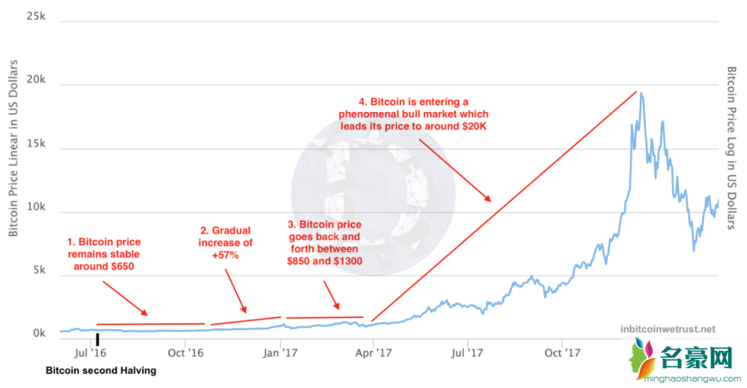 3、2020年5月12日,它将从12.5个降至6.25个。下图是第三次减半后比特币价格演变