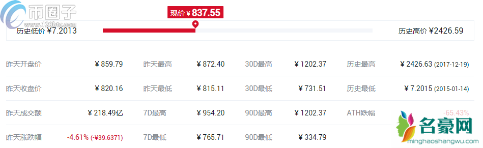 比特币市值6304.81亿美元,流通数量1859.09万,24小时成交额243.03亿美元。