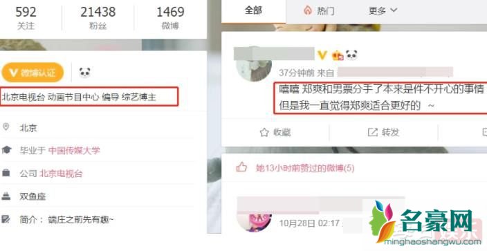 2019年11月7日,一名叫“北京电视台 动画节目中心”的“编导”微博网友,在网上曝出“郑爽和男友分手”的消息,瞬间登上了热搜。