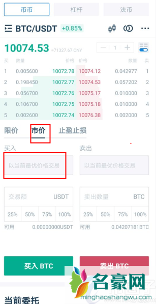 5. 所谓的市价交易就是指不设定买入价格,按照当时的市场价格买入或卖出,只需输入想买入的总金额或卖出的总量即可: