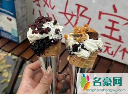 冰淇淋脆筒上放上软糯香甜的黑糯米,再涂抹上奶油,还可以加上芋泥、栗子泥等配料来创新口味,这样的“冬日版冰淇淋”成为许多人喜爱的秋冬甜点。