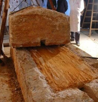 2008年12月21日,七星巨棺的内棺盖板掀开,由于内棺盖板与棺体并没有黏合,现场技术人员轻轻用力就将内棺盖板掀开。记者在现场看到,七星巨棺内只有一堆较为凌乱的黑色骨骸,主人的身体软组织已不复存在。