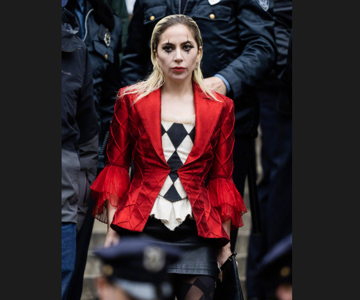 按照DC的既定计划,《小丑》的续集《小丑:二联性精神病》(《小丑2》),在2022年年底开机。日前,该片曝光了全新的片场照。在片场照上,扮演小丑女的Lady GaGa的造型得到了曝光。她穿着经典的红色外套,外加黑白格内搭,妆容很有特色。