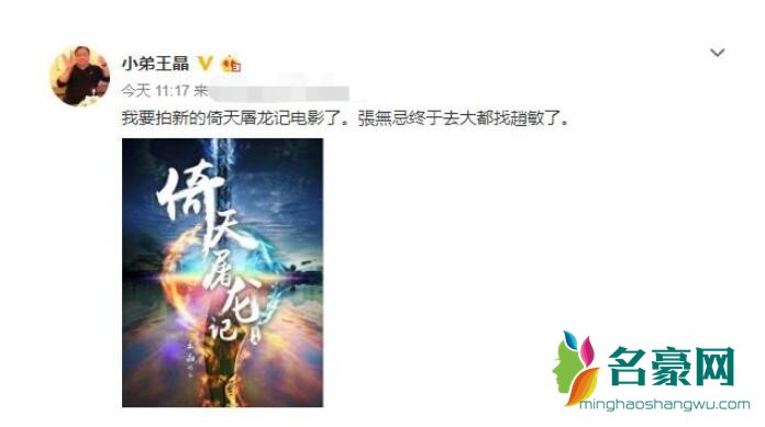 近日,王晶在社交平台上更新了一条动态,王晶晒出了一张新海报,并且发文表示,自己将拍新的《倚天屠龙记》电影,“张无忌终于去大都找赵敏了”。因为王晶的这条动态,瞬间吸引了众多网友的围观。