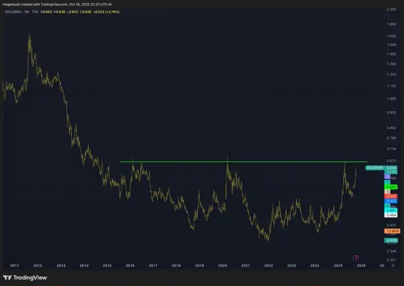 黄金即将触及其相对于标普 500 指数(SPX)的阻力点,以及即将达到 30 万亿美元的市值,因此这两个因素可能是潜在的局部顶部,你可能需要先等待,然后再进入 FOMO 状态。