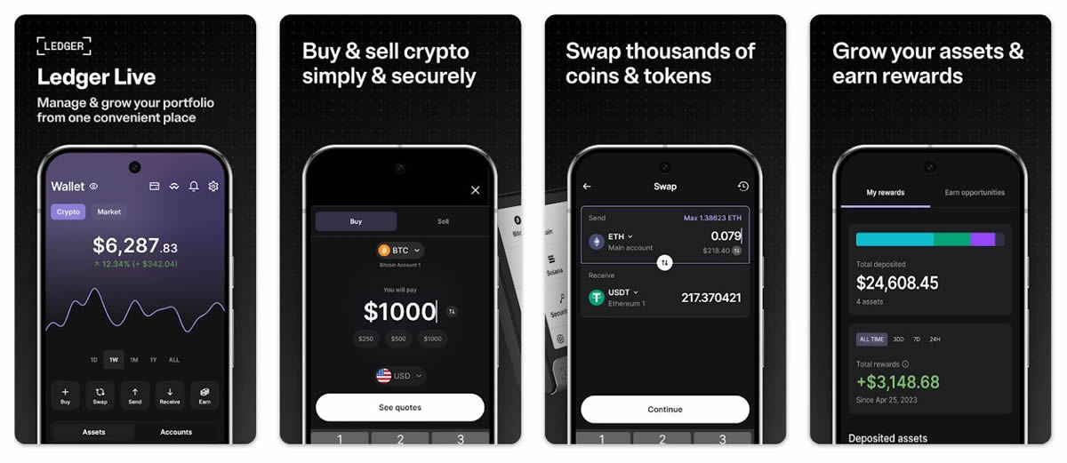 Ledger Live:是一款加密钱包应用程序和 Web3 网关,可帮助 Ledger 用户随时随地追踪数字资产。Ledger Live 移动应用程序支持多种支付方式,包括银行转账、信用卡和 PayPal。它还支持与去中心化应用程序 (dApp) 交互,并支持非同质化代币 (NFT)。LedgerLive 可将数据存储在智能手机或电脑上,无需使用电子邮件或密码登录。蓝牙连接:Ledger 支持蓝牙连接,让您能够无线管理您的加密货币持有。Ledger Live 应用程序中的这项内置功能对于喜欢使用便携式设备进行交易的用户来说尤其方便。可自定义屏幕:Ledger 设备允许用户将自己喜欢的 NFT 或照片设置为锁屏或壁纸。此外,Ledger 硬件钱包的触摸屏相对较大,但屏幕为灰阶。