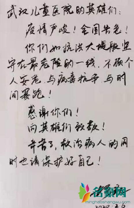 胡歌在手写信中写道:“武汉儿童医院的英雄们,你们如抗洪大堤般坚守在最危难的一线,不顾个人安危,与其抗争,与时间赛跑!感谢你们!向英雄们致敬!辛苦了,救治病人的同时也请保护好自己!”言语之间满是真挚。