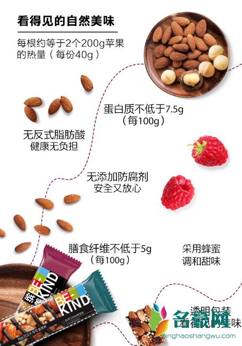 BE-KIND缤善坚果棒和其他的零食不一样,采用的是美国天然百花蜜,100%无添加,选用优质坚果,都是Supreme级别的,看得见的料足质好。低碳水营养高,不含对人体不益的反式脂肪酸,减肥可以放心吃.