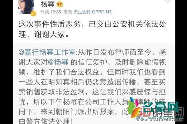 在杨幂的成名路上经历过很多坎坷和风波,这些坎坷中有些确实是她洗不白的黑历史,但有些绝对是恶意的造谣抹黑,就像2015年的不雅视频事件一样。当时网上疯传一段疑似杨幂遭迷奸的不雅视频,在这一分多钟的视频内一名女子意识迷糊的躺在床上,通过模糊不清的视频大概能看出这名女子长得和杨幂非常相似,就连声音也很像,报道中指出这是杨幂喝醉被对方灌下不明液体后迷奸的画面,一时间大家都热议纷纷。