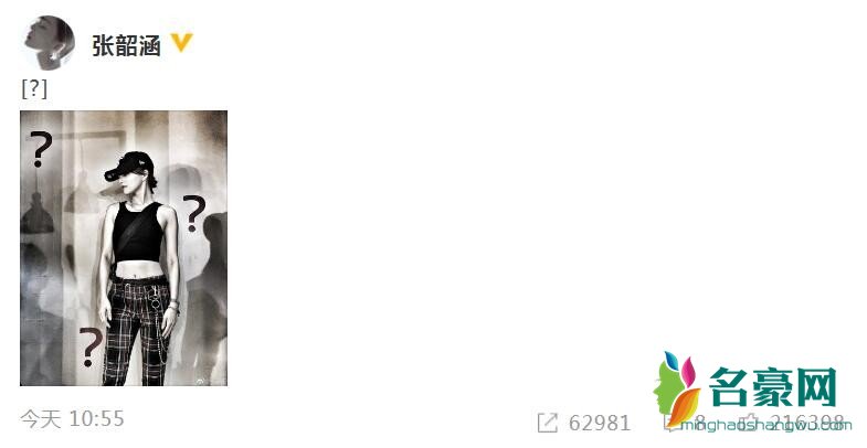 近年来,张韶涵逐渐进入了大家的视野里,对于张韶涵的复出,网友们都是非常关注的,希望张韶涵以后能够带来更好的作品给大家,近日,网曝张韶涵发问号,这到底是怎么回事?让我们一起来了解一下吧。