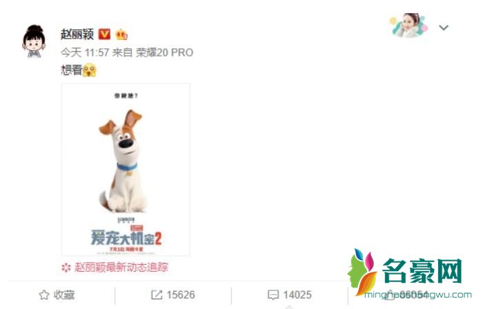 近日,赵丽颖在微博上晒出了一张电影《爱宠大机密2》的海报,并且配文道:“想看”,后面搭配这一个眼睛发光的照片!而随后冯绍峰在评论区内回应赵丽颖:“去看去看!”撒了一波狗粮。